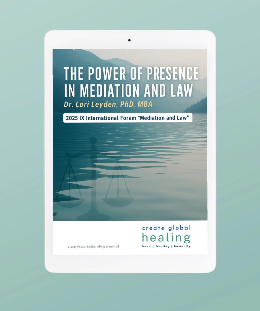 In this free ebook, Dr. Lori Leyden offers a powerful blend of neuroscience, trauma-informed tools, and embodied practices designed to support professionals navigating high-stakes, emotionally charged environments. Whether you're a mediator, attorney, judge, or facilitator, this guide will help you stay grounded, resilient, and heart-centered. Learn practical strategies to protect your well-being, deepen your impact, and transform mediation into a sacred act of service. This is more than a resource—it’s a replenishment for your mind, body, and spirit.
